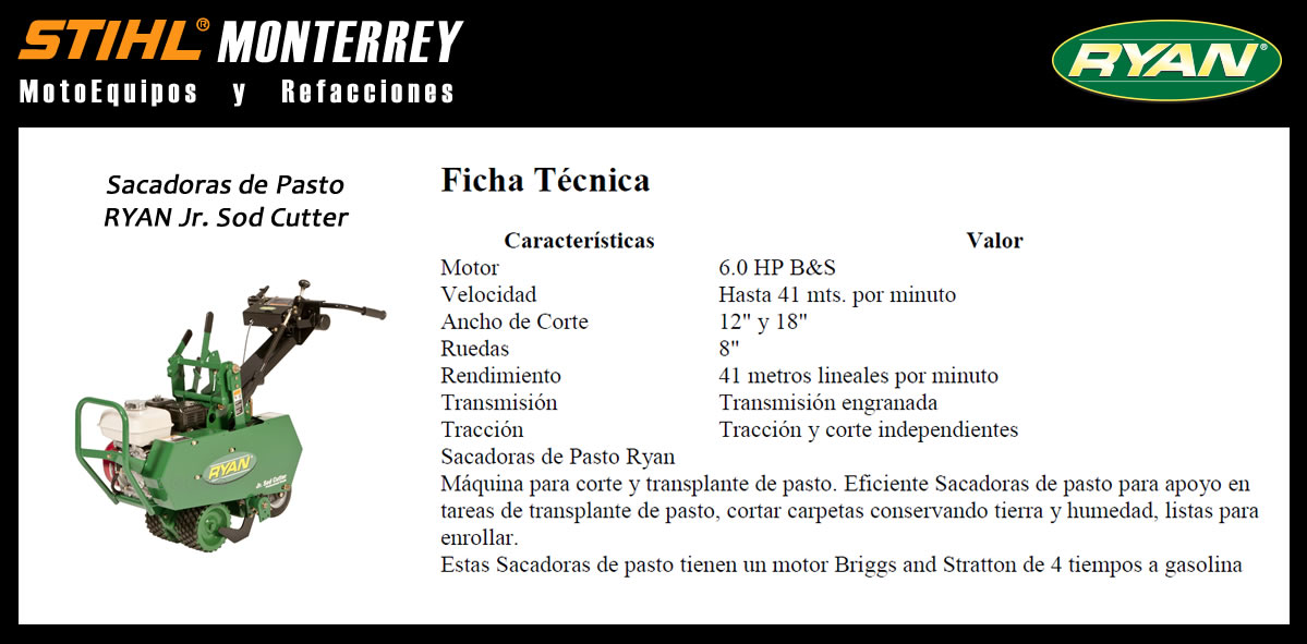 Sacadoras de Pasto Ryan Jr. Sod Cutter 12" y 18"